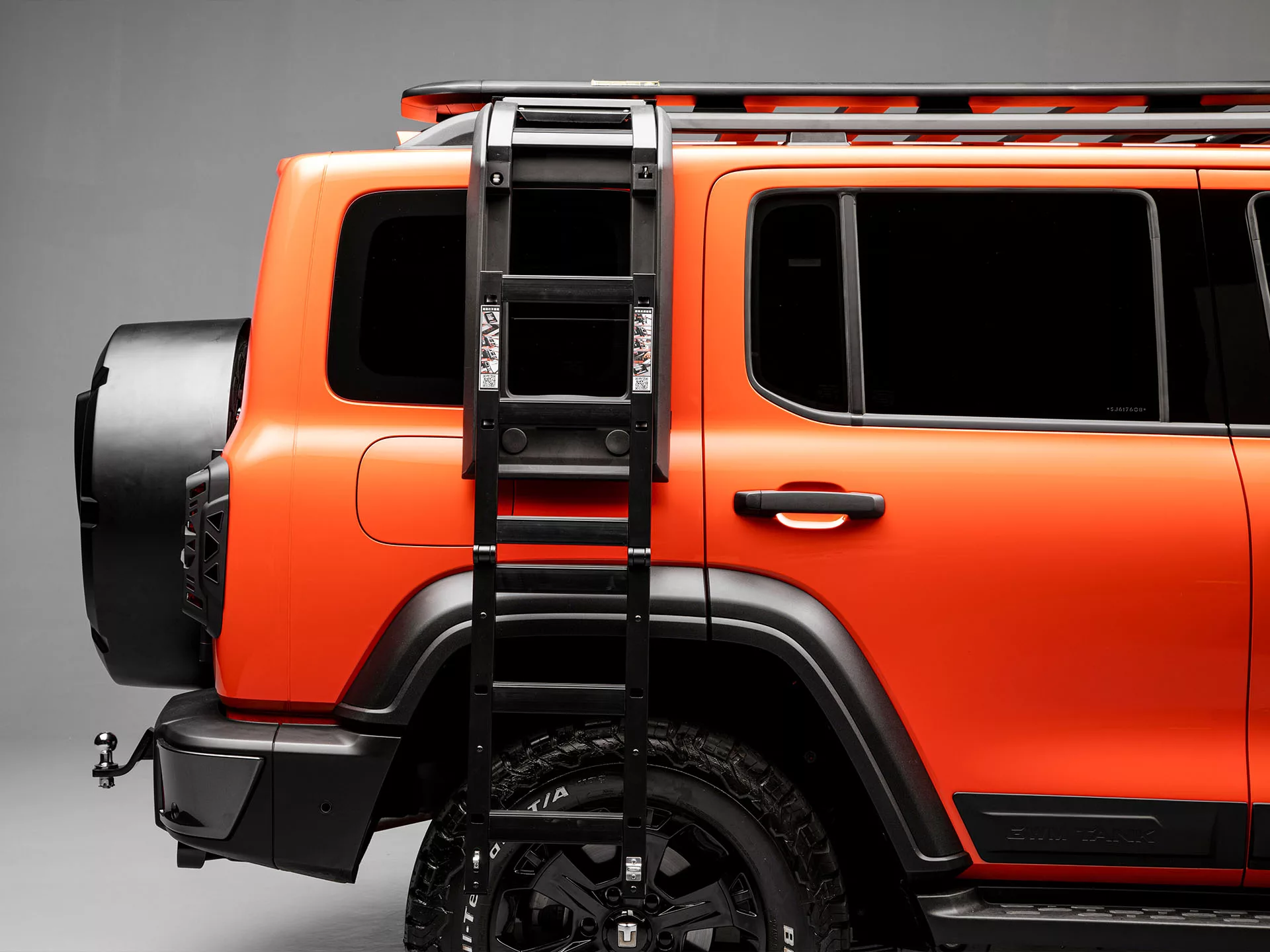 Para o Tank 300, utilitário esportivo híbrido com foco em desempenho fora de estrada, estão disponíveis 32 acessórios. Entre os itens com desconto estão o bagageiro de teto off-road, capô off-road, capa de estepe off-road, escada lateral, grade frontal personalizada, pneus off-road BFGoodrich A/T, cabo V2L e a tenda GWM.